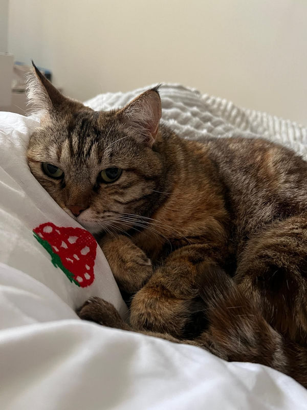 Jamila is a quiet, calm girl who adores her human and forms deep, loving bonds. She can be a little jealous if she feels she has to share your affection, so she’d be happiest as the only cat in a peaceful home without young children. She enjoys a gentle playtime, but what she loves most is simply being close to her person — a soft presence beside you, content just to be near. She’s not exactly a lap cat, but she might surprise you one day when she chooses to be.