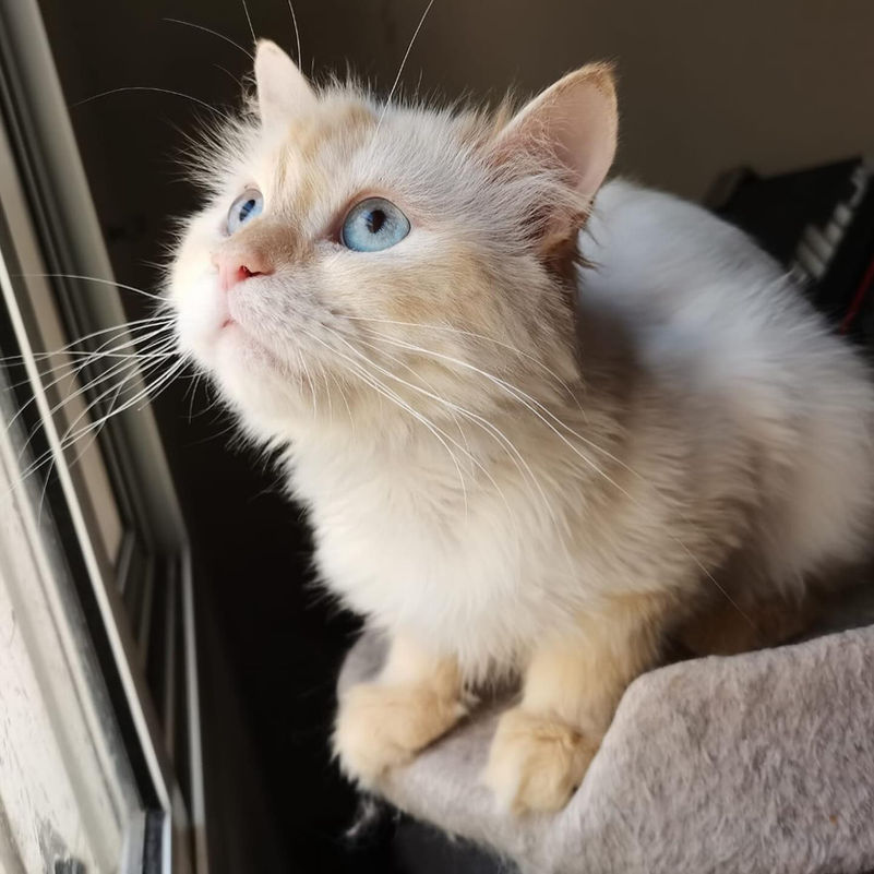 Meet Ronald– a stunning cream boy with dazzling blue eyes and the sweetest little face. With his gentle heart and cuddly nature, Ronald is the kind of cat who instantly melts your heart.
