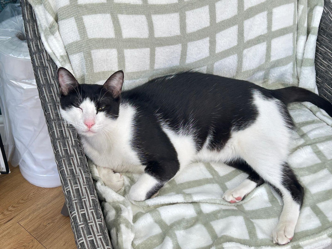 These two share a truly special bond, they adore playtime – especially chasing feather wand toys – and love snuggling up together at nap times and will always join you at bedtime to snuggle up. Sylvester is full of energy, loves zooming through his tunnel, and will happily curl up next to you on the sofa for cuddles. Sydney, his little shadow, isn’t far behind – shy at first, but once she trusts you, she melts for back scratches and flops over in delight. Her sweet eyes say it all.